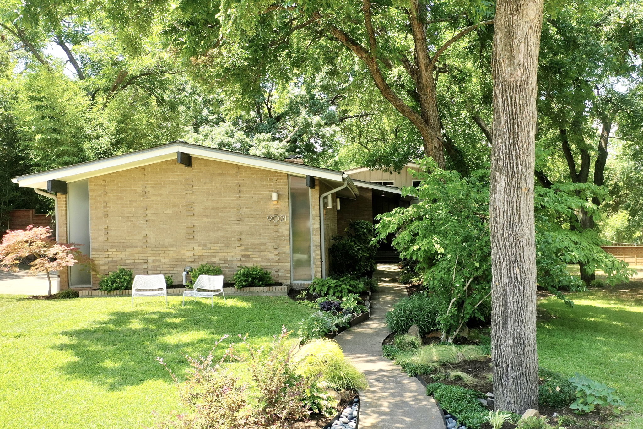 Explore the elegance of Mid-Century Modern design in this rare Ju-Nel home located in Lake Highlands. Showcased on the 2018 Lake Highlands Home Tour, this split-level home features vaulted ceilings and walls of windows that allow natural light to integrate the indoor and outdoor living spaces seamlessly. Hardwood floors create a smooth flow throughout the home. The sleek, updated kitchen with an island opens to the dining area, while a stunning double-sided fireplace connects the dining and living spaces. The property is situated on almost half an acre and boasts lush bamboo and mature trees, creating a peaceful and Zen-like atmosphere. Enjoy multiple outdoor living areas, accompanied by a pool, for easy entertaining. Additionally, a detached, climate-controlled office or studio is ideal for work or creative pursuits. This property is conveniently located within walking distance to Lake Highland Elementary, White Rock Lake, and a short commute to downtown Dallas.
