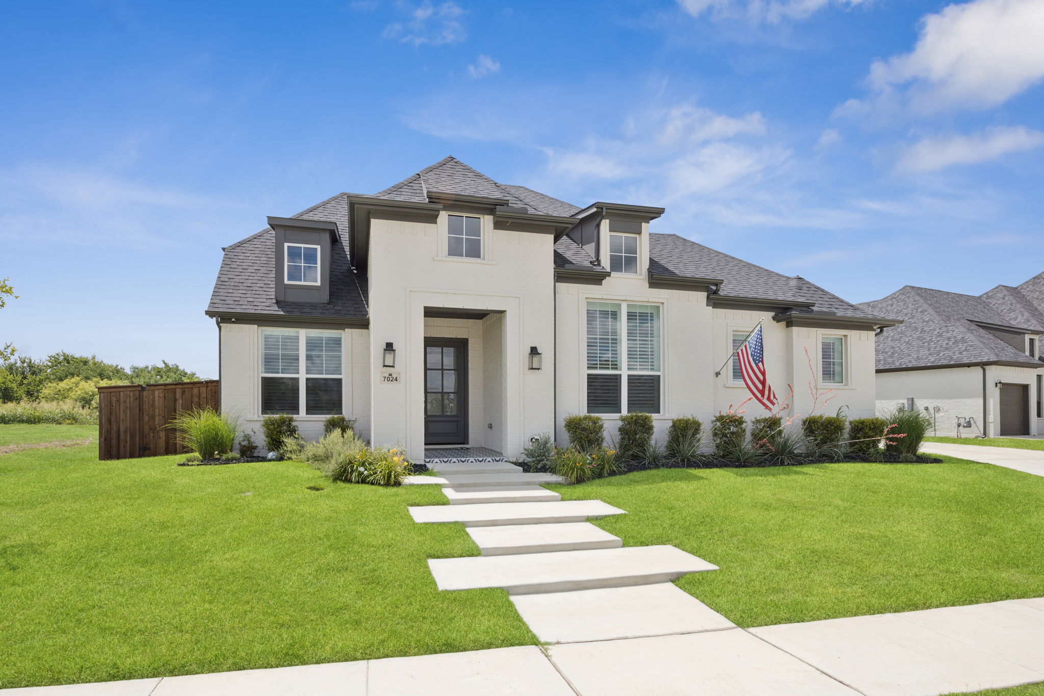 Step into luxury with this designer curated & highly customized Windmiller home, situated in the highly sought after Canyon Falls community & zoned Argyle ISD. Backing to a greenbelt, this very private lot (with the option to change to open greenbelt fencing) offers elevated living inside & out. Impressing upon first glance, the 8ft Mahogany front door with Flemish glass and beautifully-tiled entry sets the tone for the custom finishes throughout. Inside, this expansive one-story layout features wood flooring, caviar-painted 8ft doors, and modern 6in trim with cased openings to create an elegant, seamless flow between all living spaces. The dining room stuns with LED tray ceilings with color-changing lighting for just the right ambiance. Located in the heart of the home, a top-of-the-line kitchen is outfitted with Cambria Level 4 matte black quartz counters, Monogram and GE appliances, and custom cabinetry. A floor-to-ceiling cultured stone fireplace anchors the main living area, while custom shutters throughout the home elevate both privacy & style. Primary suite is a showstopper, with vaulted ceilings, 20ft wood beam & Pottery Barn Remington chandelier. Spa-inspired bathroom features a frameless glass shower with an Emerge shower system, Delta Zura black and chrome fixtures and double vanity. Smart home features include pre-wired surround sound system, hardwired 6-camera system & dual Nest thermostats. Step outside to enjoy an oversized 15’ x 30’ lighted custom pool, complete with tanning ledge, spa, and fountains all designed to maximize this premium lot. Outdoor living showcases a covered outside grill area with extended patio to allow ample space for entertaining. Highlight of home for many will be the extra tall-newly epoxied garage, measuring 12ft high as well as oversized in width & length, offering a rare find for larger vehicles or boat. HOA includes front yard care, cable, internet, fitness center, pools, playground, splash pad, dog park, trails and more.